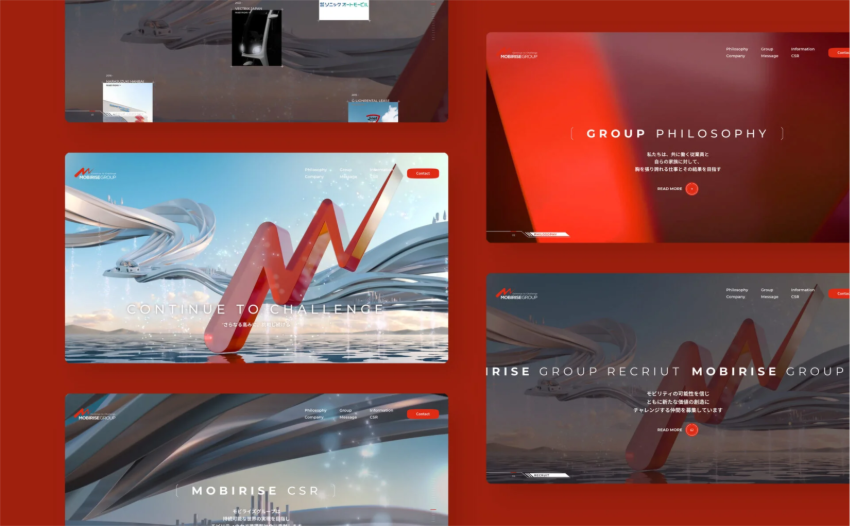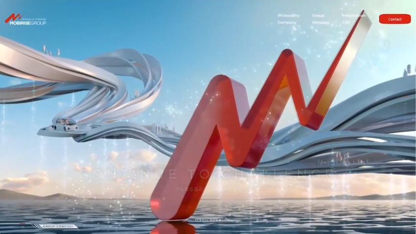 モビリティの力で社会とともに成長するという企業理念のもと、モビリティ事業とライズ事業を展開するモビライズグループ。グループが描く未来像を3DCGで表現し、スクロールに合わせてカメラワークが変化するインタラクションによって没入感を演出しました。