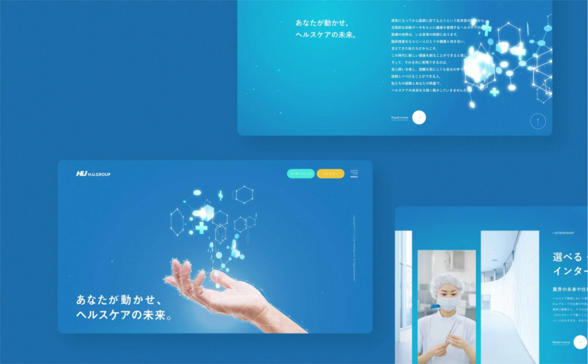 「自走」をテーマにコンセプトワードの設計から行いました。手で医療・ヘルスケアを動かすアニメーションでコンセプトを表現。クリアな質感と未来を動かすというメッセージ性をWebGLで実装しました。