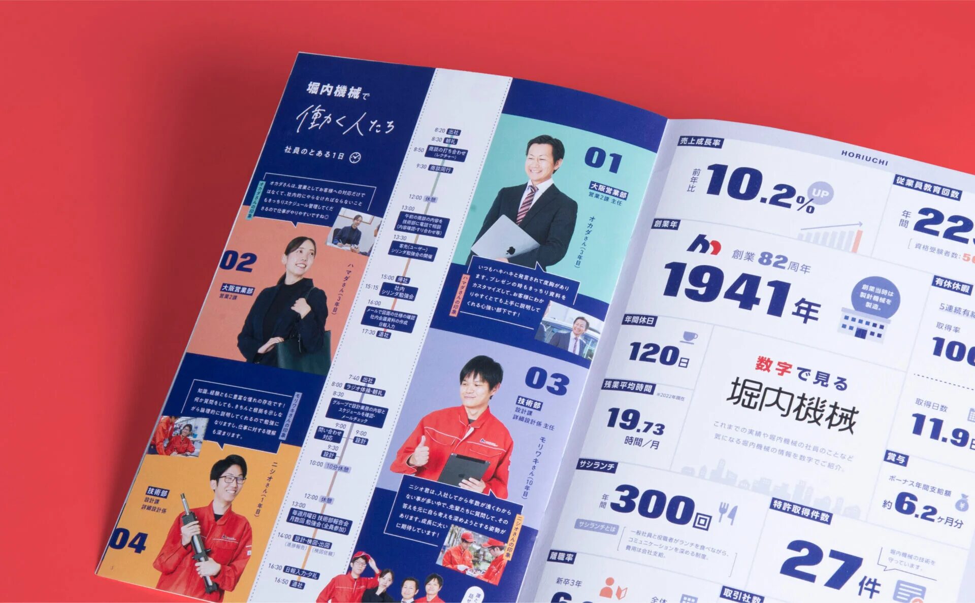 採用活動に特化したパンフレットで、求職者に企業の魅力を伝えることを目的としています。近年、求職者はビジュアルを重視する傾向にあるため、求職者の興味を引くストーリー性や写真のクオリティ、目を引くデザインが重要です。