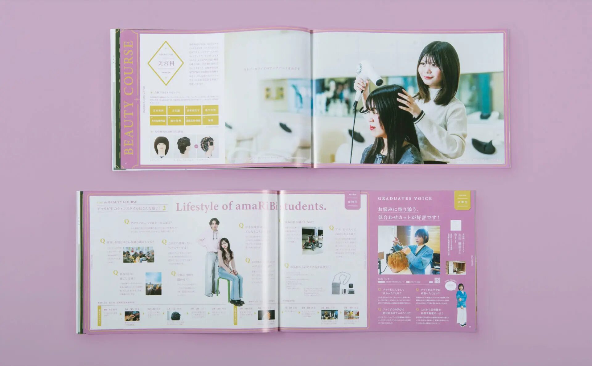 大学の概要や魅力を紹介するために作成されます。大学の魅力をわかりやすく伝えるために、写真や図表を多用したデザインが重要です。また、学生や卒業生の声を掲載することで、リアルな魅力を伝えることができます。