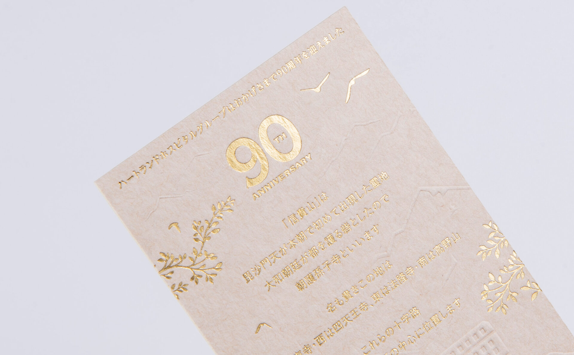 歴史や会長の想いをしっかりと伺い、90周年にふさわしい華やかなカードに仕上げました。