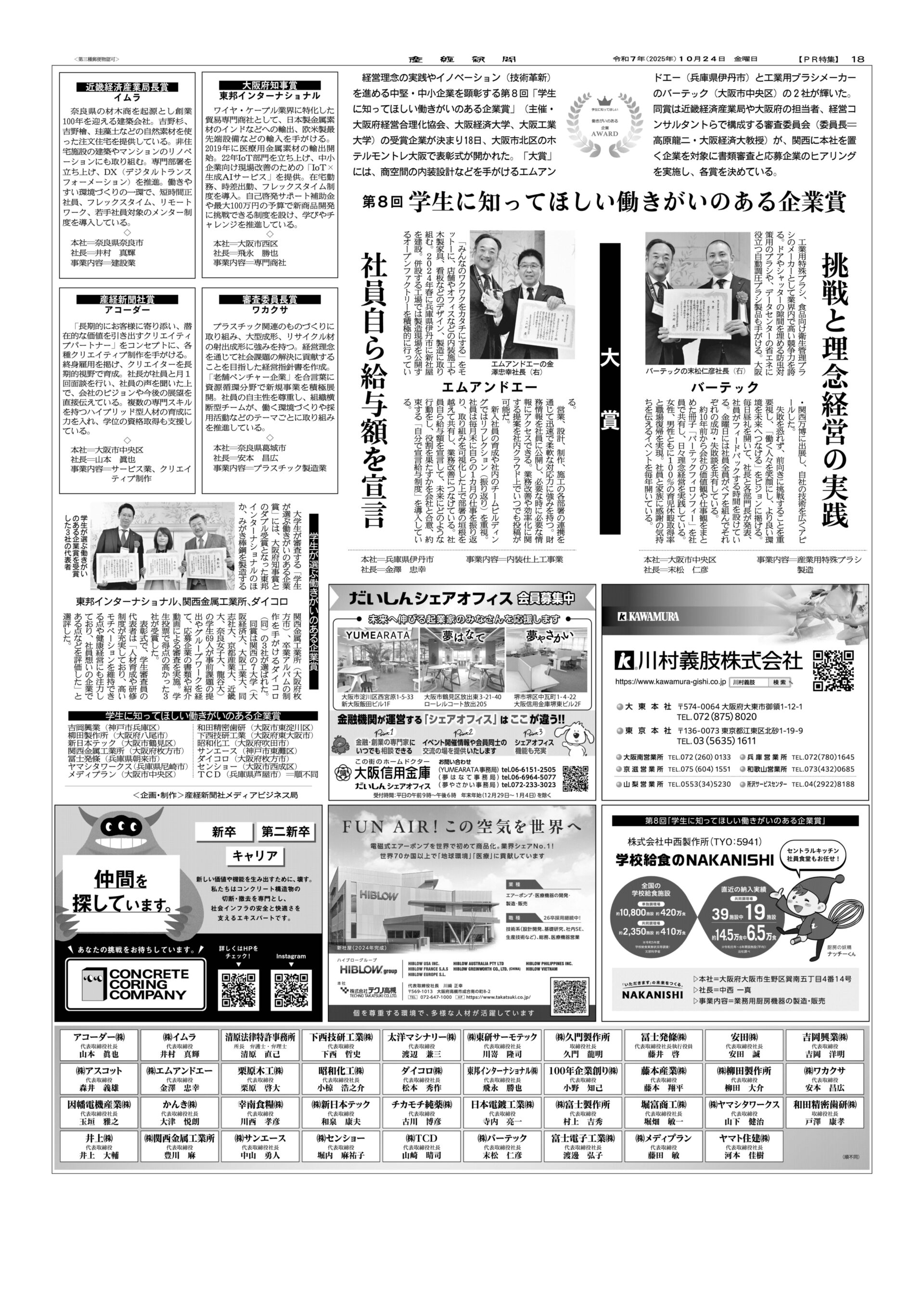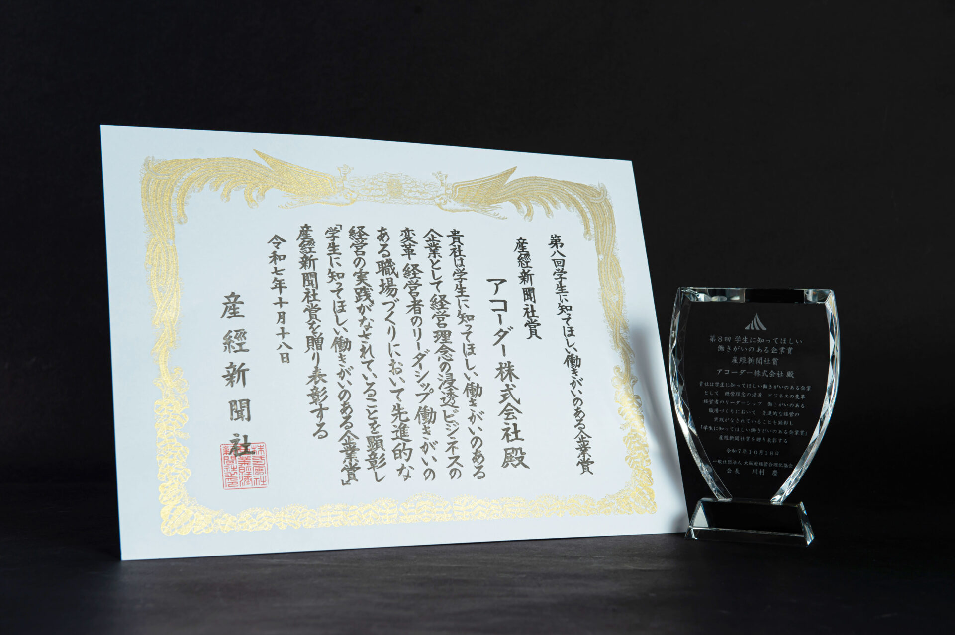 第8回学生に知ってほしい働きがいのある企業賞 産経新聞社賞を受賞しました。