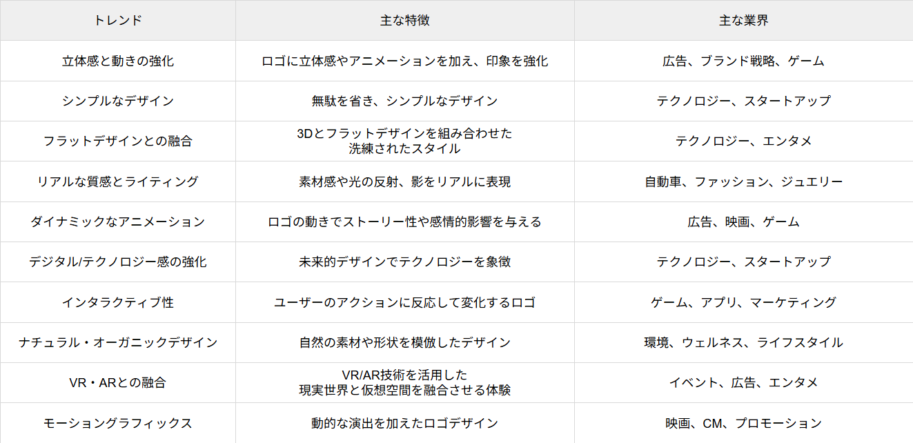 3DCGロゴは、業界全体で進化を続けており、シンプルでありながらダイナミックな動きやリアルな質感を取り入れたデザインが求められています。ブランドや企業の個性を際立たせるために、3D技術を駆使して視覚的なインパクトを演出し、印象的で記憶に残りやすくします。