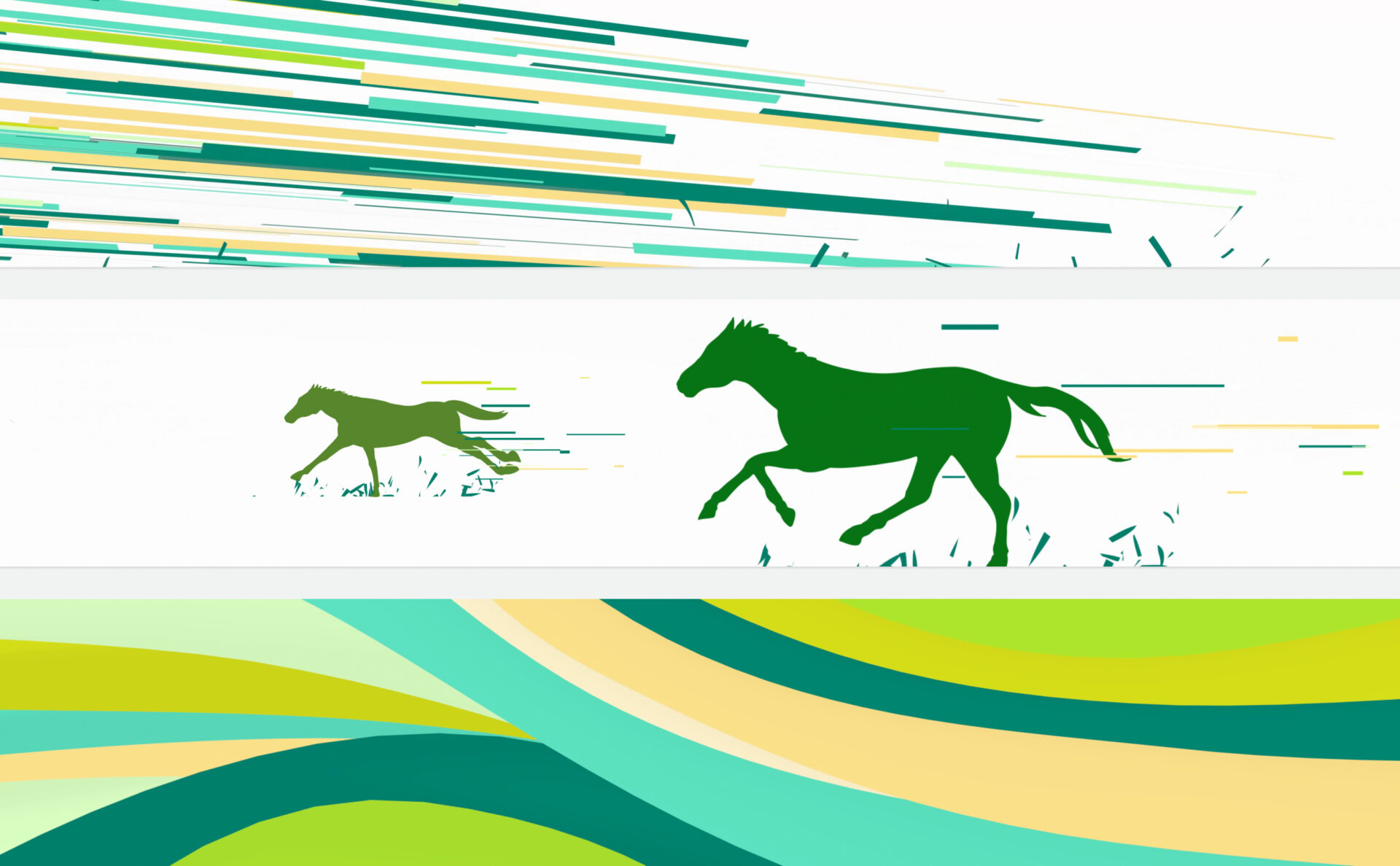 大迫力の大型スクリーンでリアルな臨場感とともに競馬が楽しめるスクリーンの待機映像を制作しました。ロゴカラーを基調とした配色で、競走馬の疾走感を強調するとともに、外装デザインの爽やかさをイメージした映像演出を再現しました。