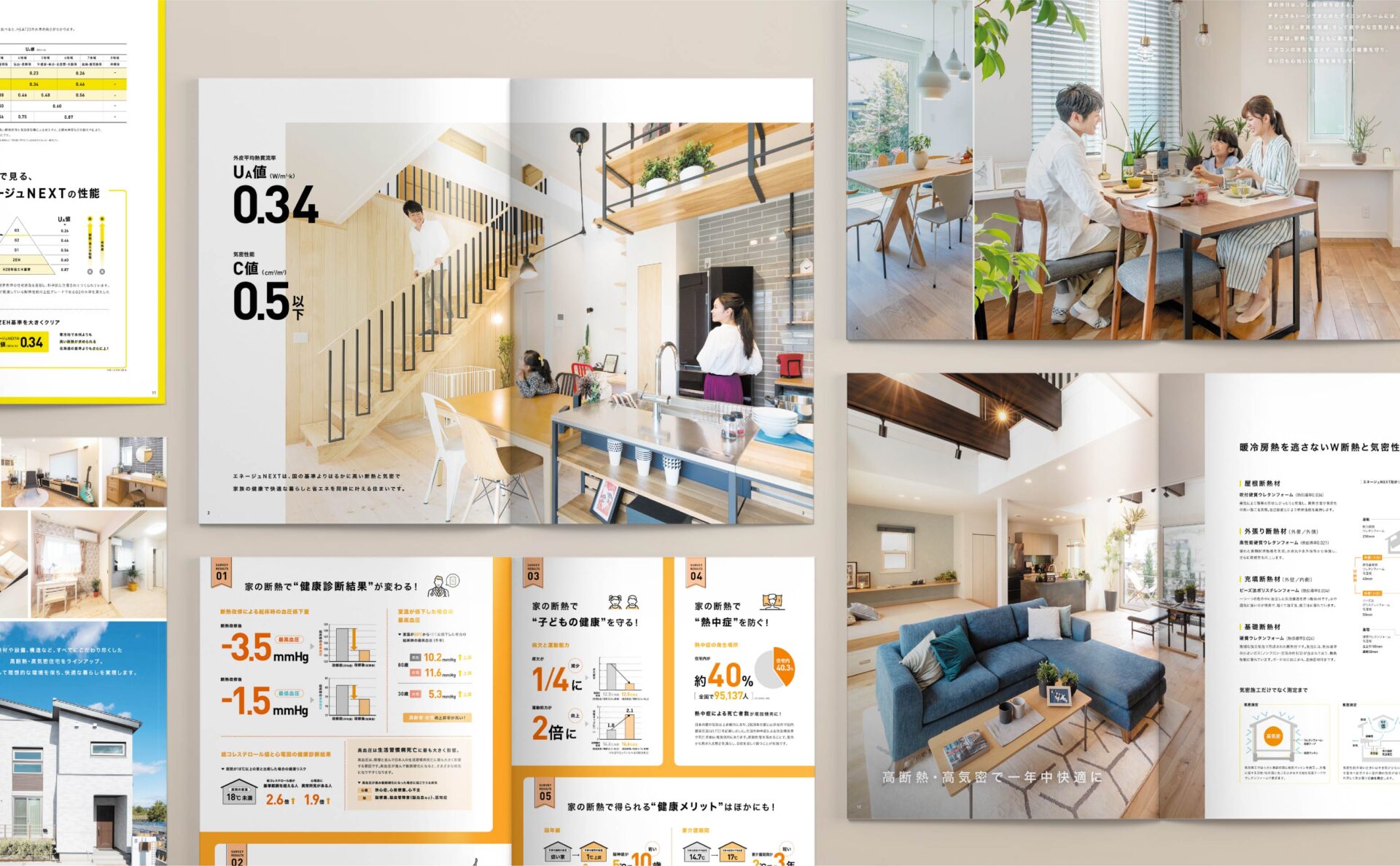 「健康」「快適」「省エネ」な高性能の家を手頃な価格で提供するヤマト住建。国の基準よりはるかに高い断熱と気密を実現するエネージュNEXTのカタログ。家の性能に関するあらゆる情報をまとめ直し、一番性能の良さがしっかり伝わる構成・レイアウトを追求。